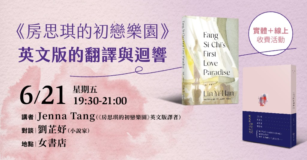 另外,也將請她分享翻譯此書的挑戰,包括如何將書中台灣社會的現象轉譯成英美讀者能理解的語彙、如何轉譯作者林奕含對經典文學的引用?又要如何轉譯林奕含提出的「誘姦」概念。